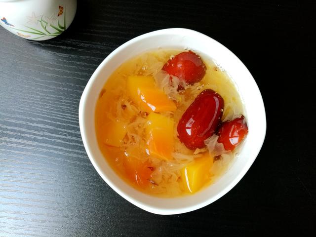 4. 銀耳燉至粘稠、出膠,加入木瓜和冰糖