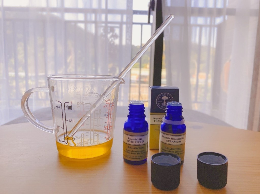 2. 在油裡加入1%精油(約6滴)。