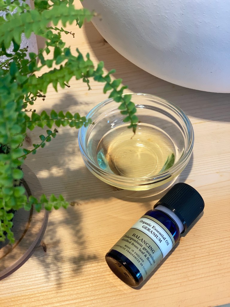 在氣味的調整上面,如果您和我一樣喜歡淡雅的花香,天竺葵精油的滴數就可以再減少一滴,讓花香若隱若現,也可以直接使用我建議的原比例,天竺葵的香味會更明顯濃郁一些,很適合要來一場浪漫約會時使用唷!